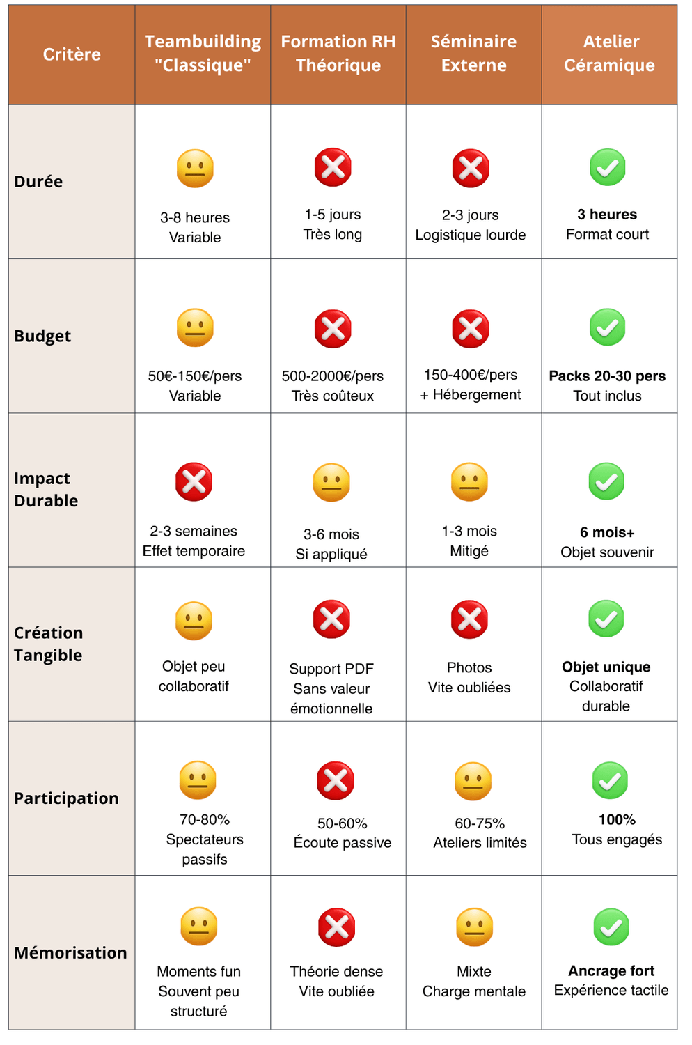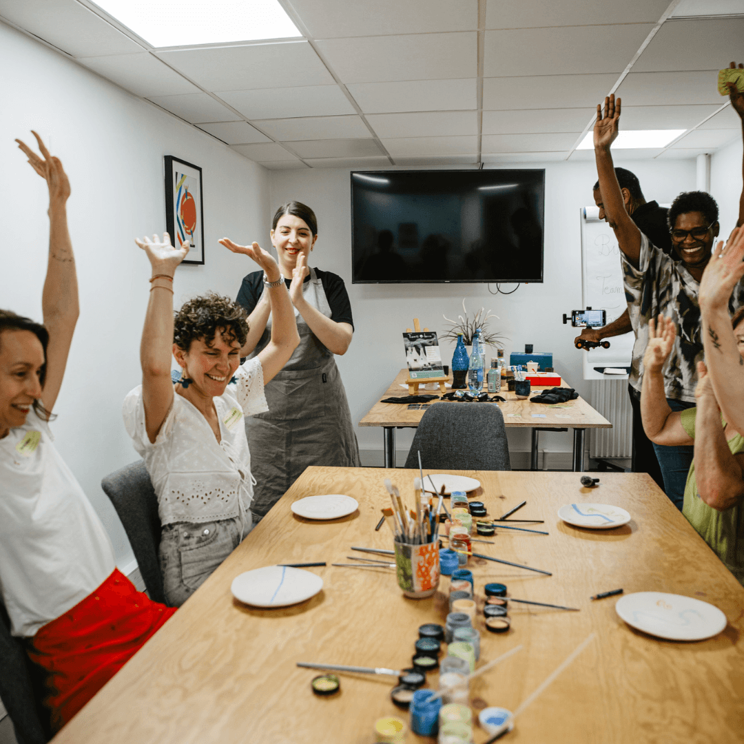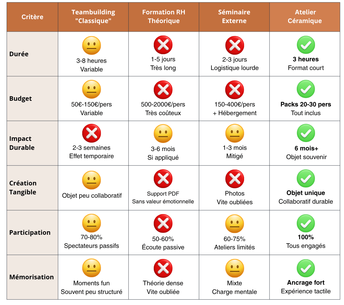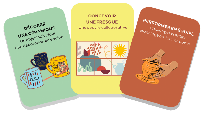 Contrairement aux teambuildings "classiques", notre atelier céramique utilise un jeu de cartes inédit qui force la collaboration créative.
